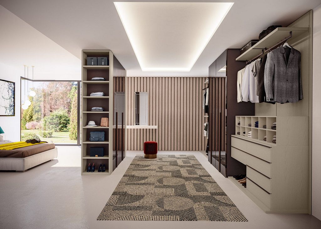 L'arredo coordinato di una camera da letto parte anche dalle cabine armadio, realizzate con i migliori materiali, finiture e colori per integrarsi al resto dell'arredo.